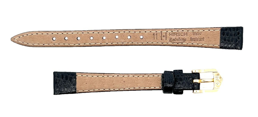 HIRSCH 11mm Women's Black Genuine Leather Gold Buckle Watch Strap Band