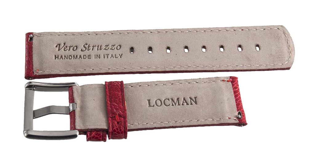 LOCMAN 24mm x 23mm Red Leather Watch Band Strap W/Silver Buckle