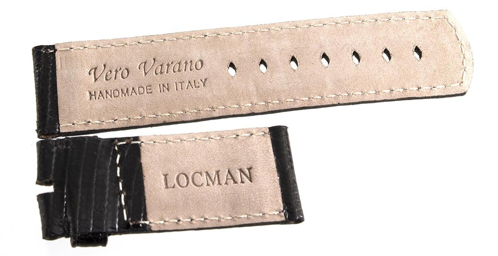 LOCMAN 24mm x 24mm Black Leather Watch Band