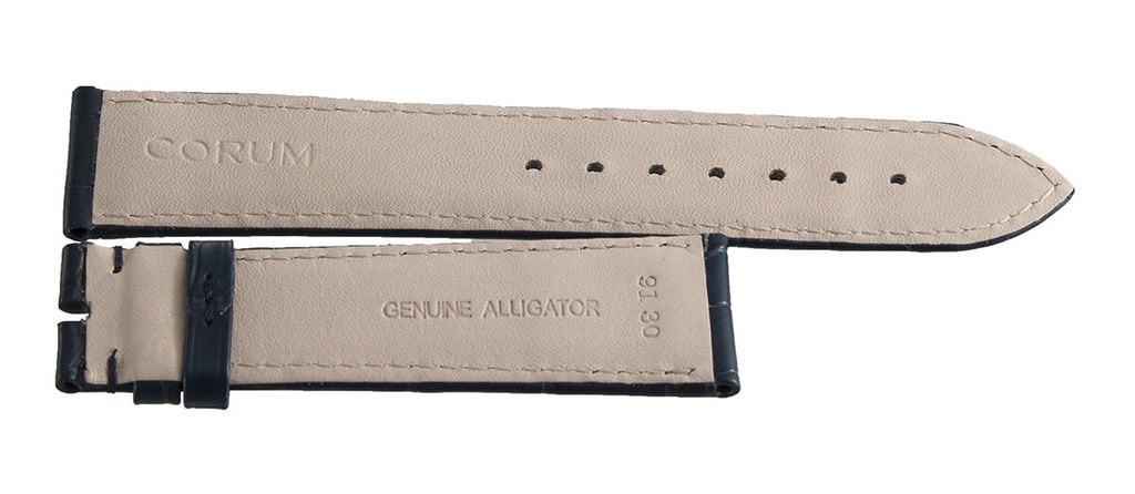 Authentic Corum Swiss 20mm x 18mm Navy Blue Alligator Leather Watch Band 91-30