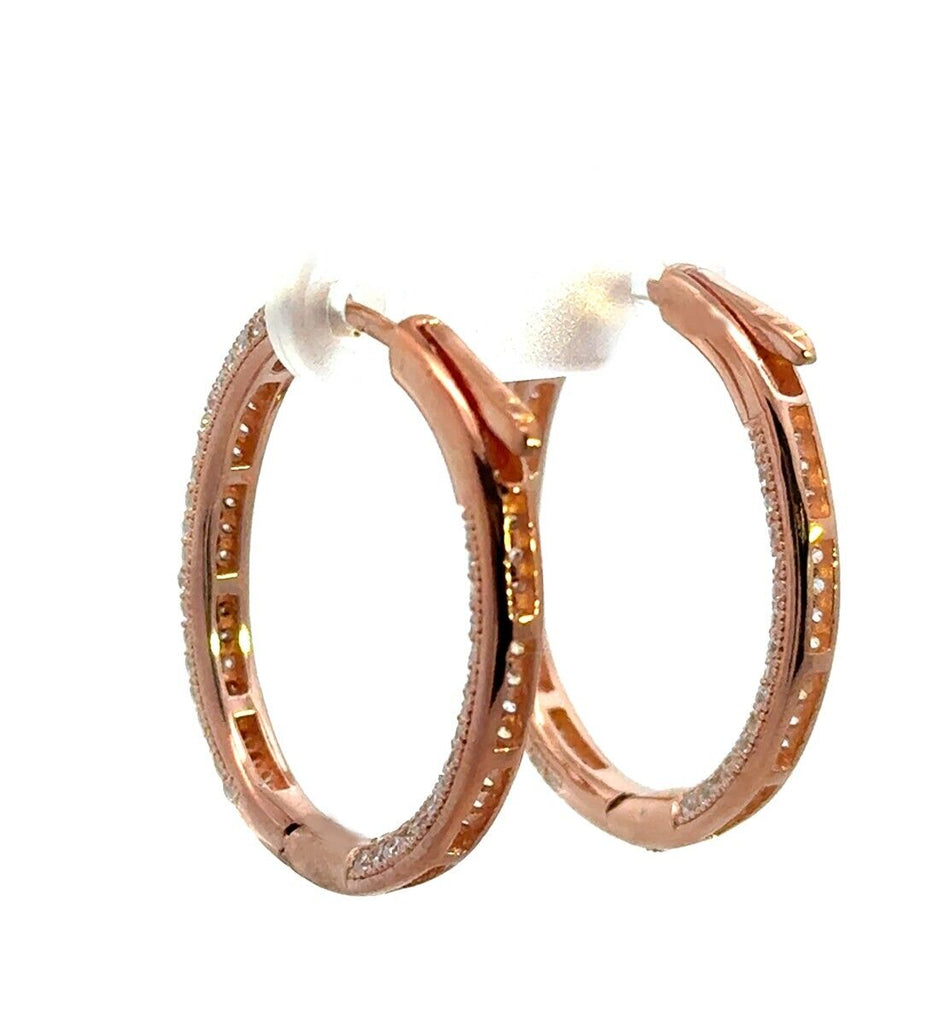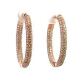 18k Rose Gold Plated Cubic Zirconia Oval Hoop Women's Silver Earrings