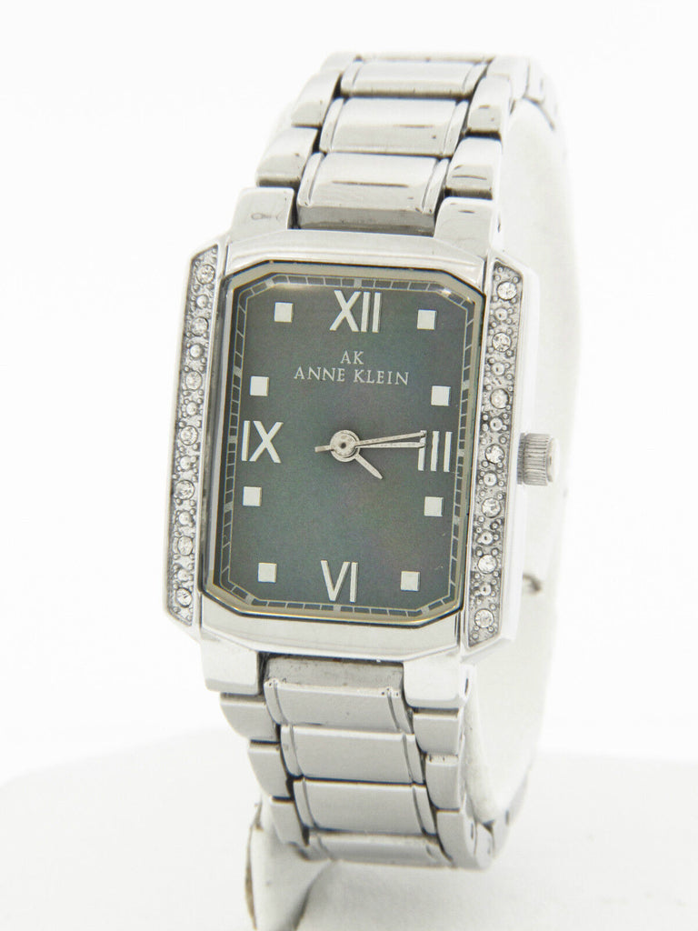 Brand: Anne Klein Gender: Women Movement: Quartz Case size: 24.0 mm (excluding crown) Case material: Stainless Steel Dial color: Gray Mother Of Pearl Water resist.: 99 Feet Band material: Stainless...