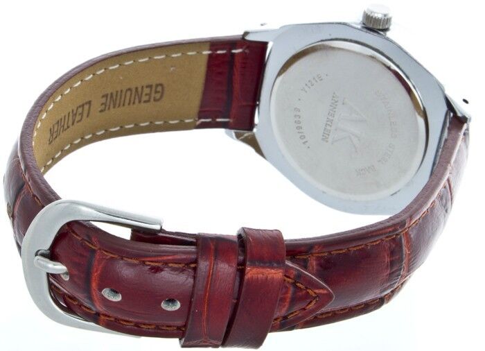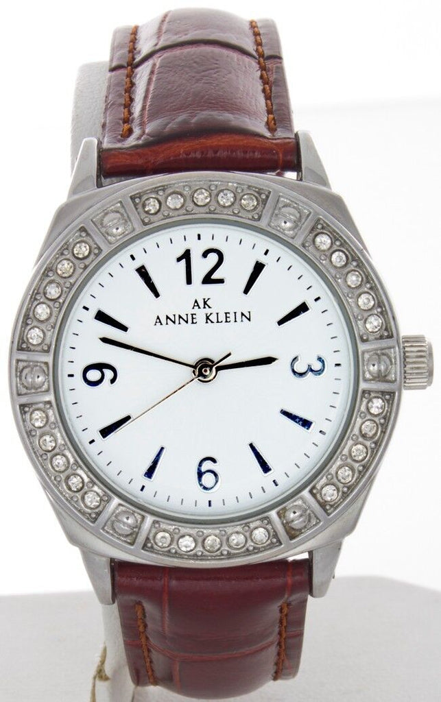 Anne Klein Women's 10-9639 Crystals Accented Bezel Brown Leather Strap Watch