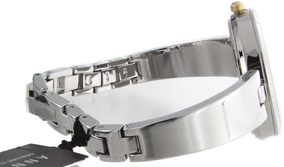 Watch Information: Gender: Ladies Case Size: 32mm Dial Color: Silver Material Case: Metal Material Band: Metal Diamonds: n/a Movement: Analog Quartz Water Resist: 30 Meters Water Resistant Features: Hours, Minutes,...
