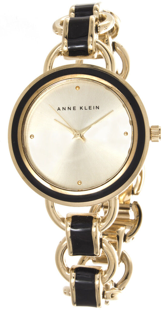 Anne Klein Women's Two-Tone Black Enamel Open Link Bracelet Watch AK/1246BKGB