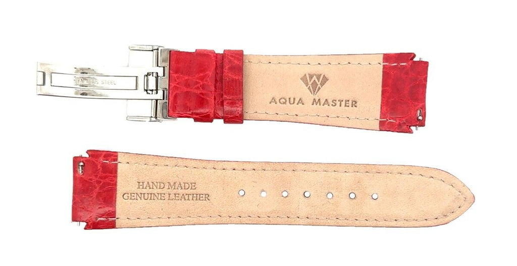 Aqua Master Mens 20mm Alligator Leather Silver Buckle Watch Band Strap