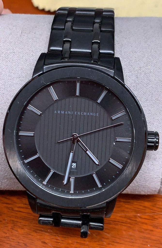 Watch Information: Gender: Men's Case Size: 45mm Dial Color: Black Material Case: Stainless Steel Material Band: Stainless Steel Diamonds: n/a Movement: Analog Quartz Water Resist: 100 Meters Features: Date Display...