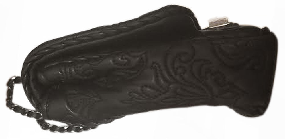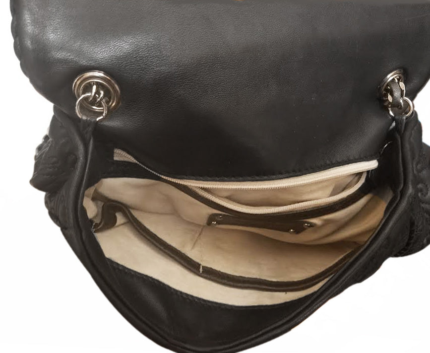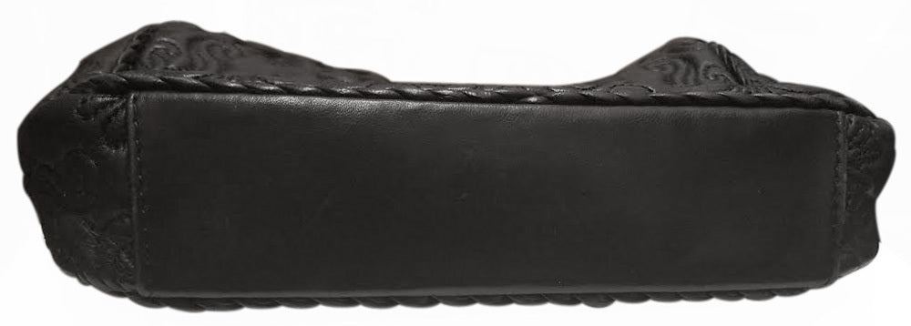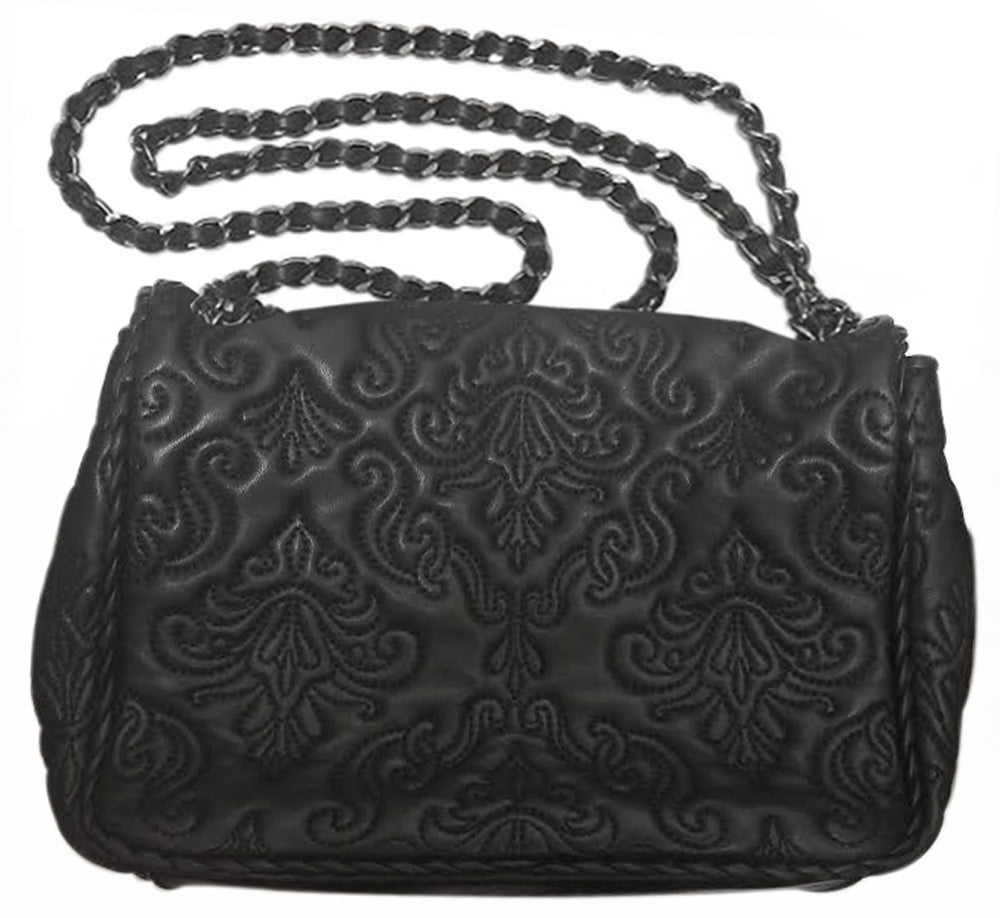 Authentic Jennifer Tattanelli Womens Embroidered Black Leather Hand Bag