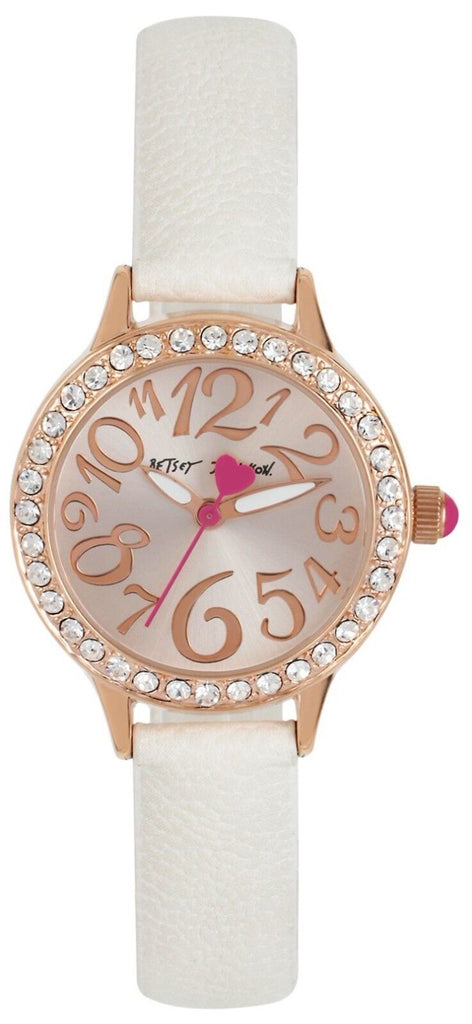 Betsey Johnson BJ00536-30 Rose Gold Dial White Leather Bracelet Womens Watch
