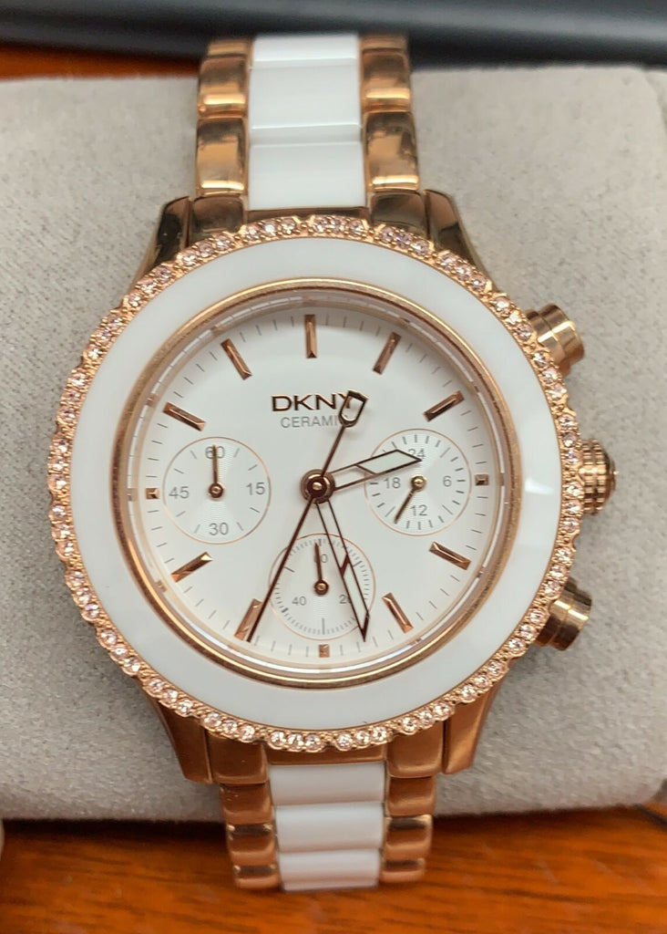 DKNY Brooklyn White Dial Rose Gold and White Ceramic Ladies Watch NY8825