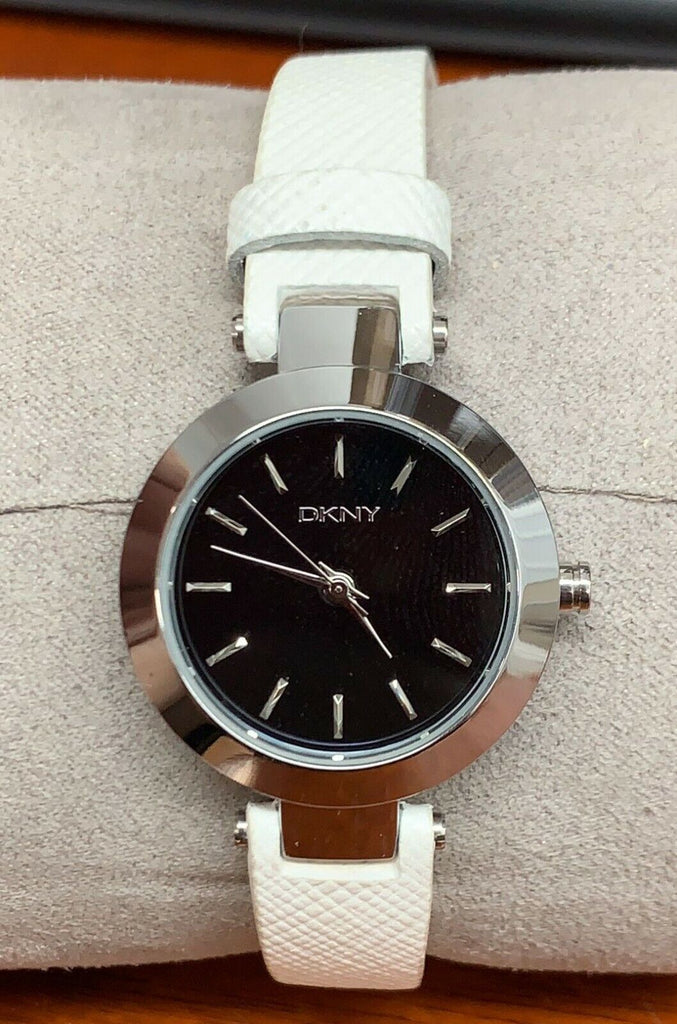 Dkny Women's Stanhope Black Dial White Leather Quartz Watch NY2198