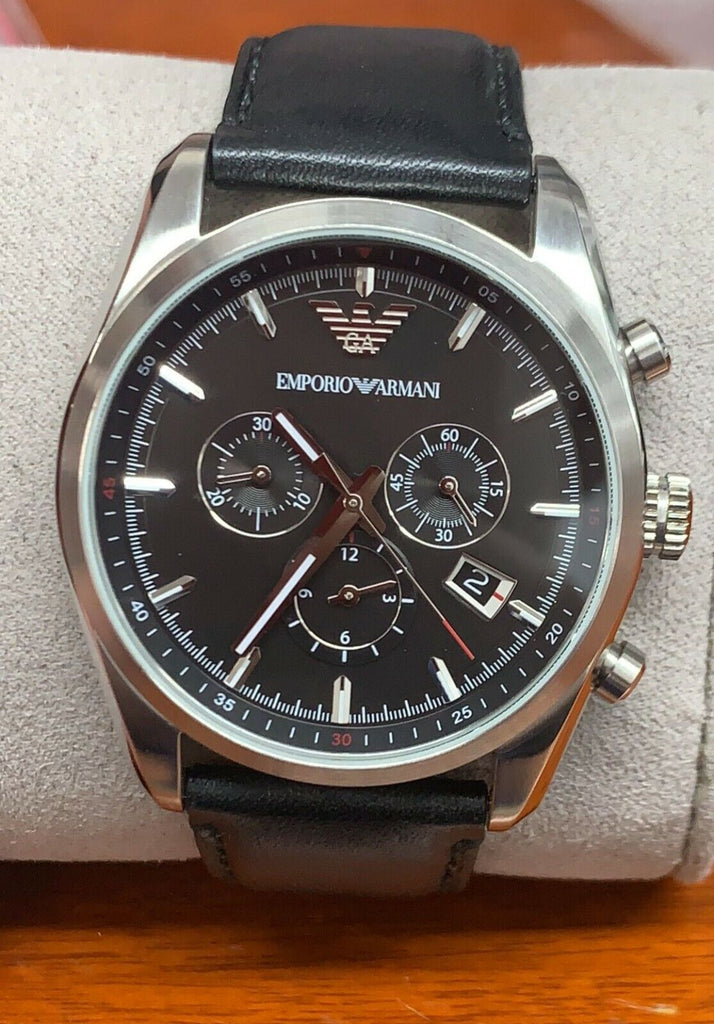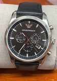 Emporio Armani Men's Black Dial Black Leather Band Stainless Steel Watch AR6039