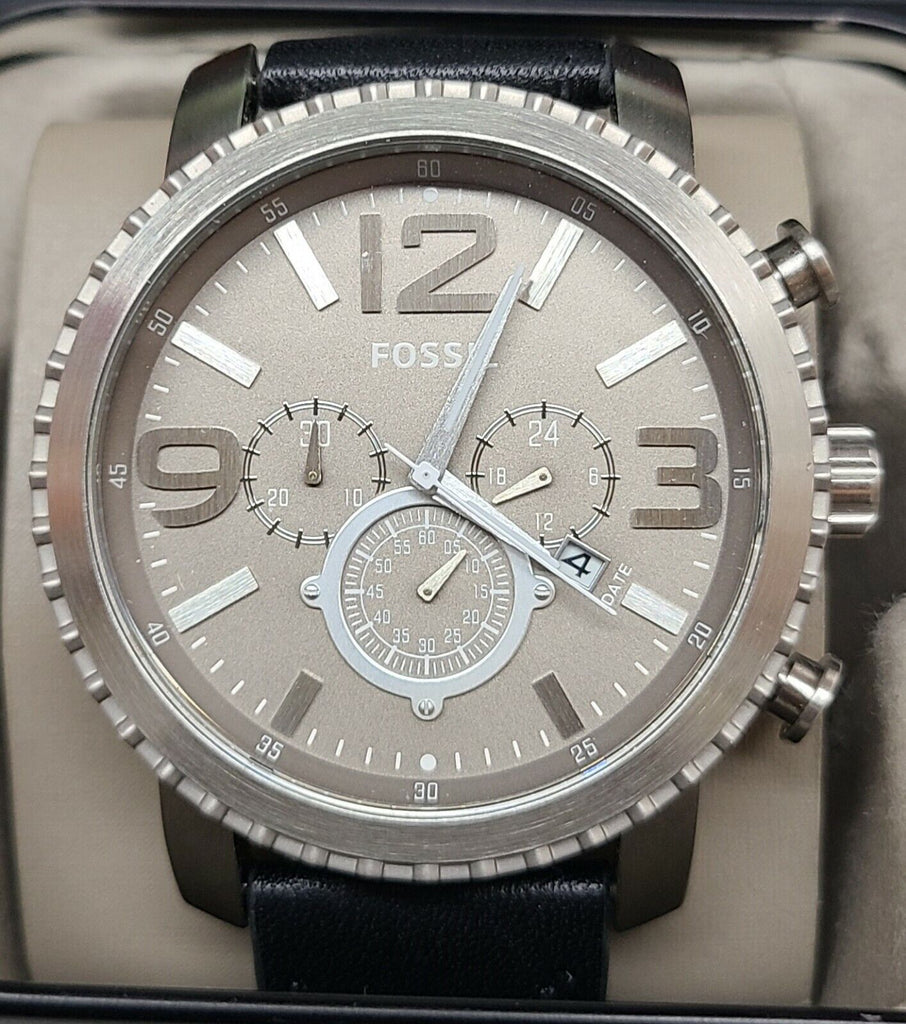 Fossil BQ1175 Grey Dial Black Leather Strap Chronograph Men's Watch