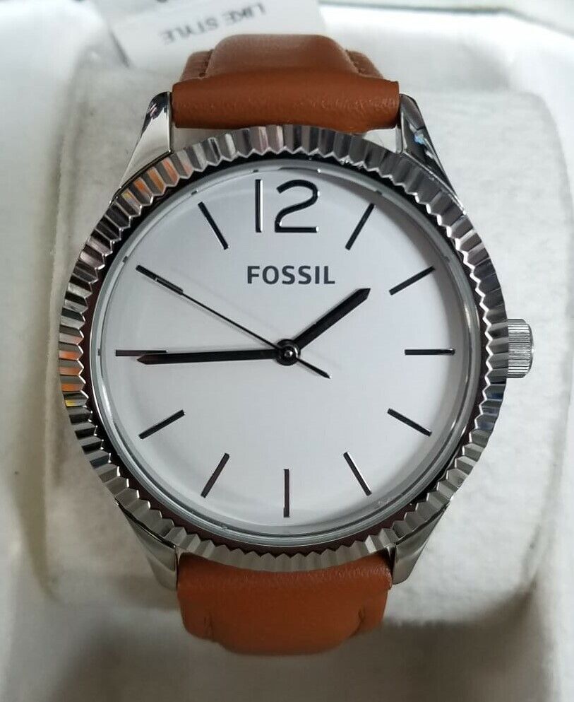 Fossil BQ3074 White Dial Brown Leather Strap Women's Watch