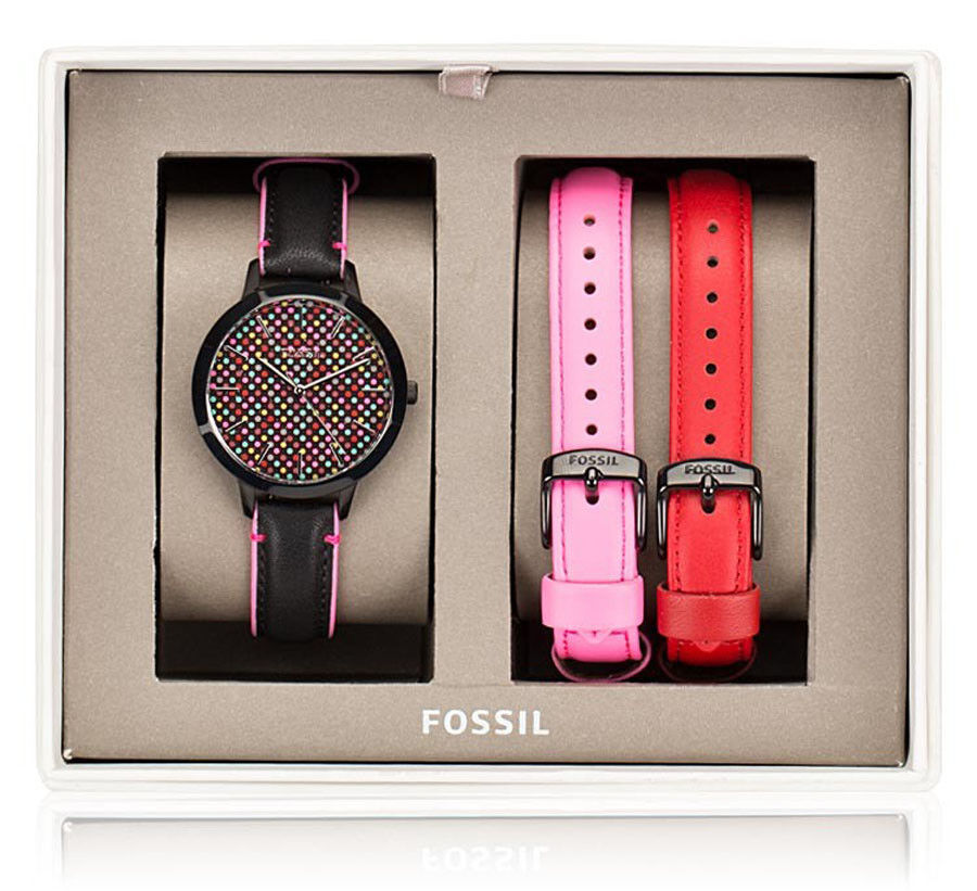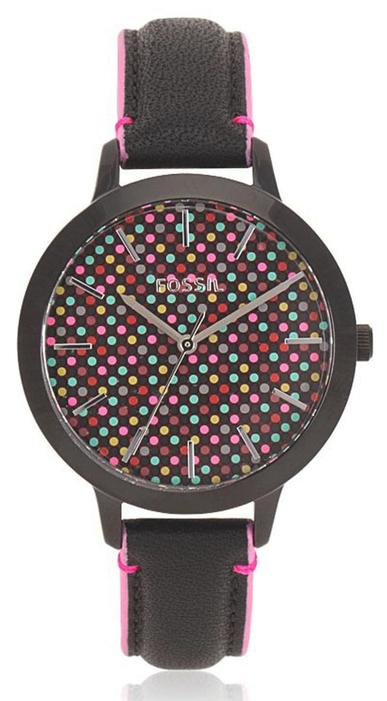 Fossil BQ3151 Polka Dot Black Dial Black Leather Strap Women's Watch Set