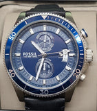 Fossil CH2945 Blue Dial Black Genuine Leather Strap Chronograph Men's Watch 44mm