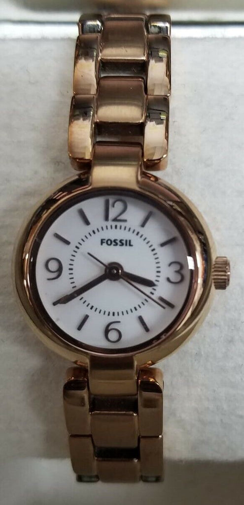 Fossil Womens White Dial Rose Gold Tone Stainless Steel Bracelet Watch ES2742