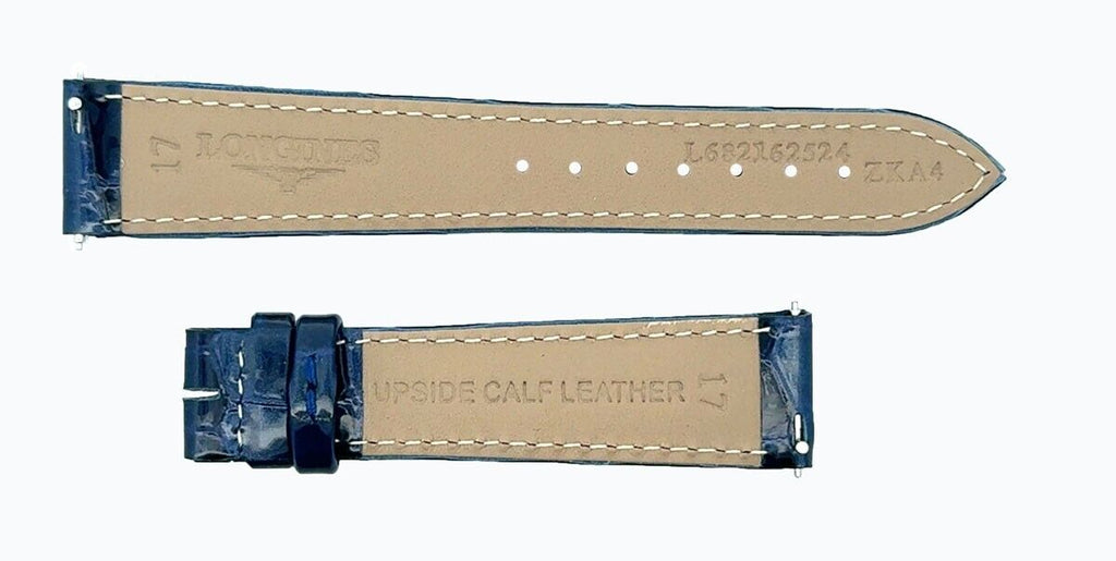 Genuine Longines 17mm x 14mm Shiny Blue Leather Watch Band L682162524