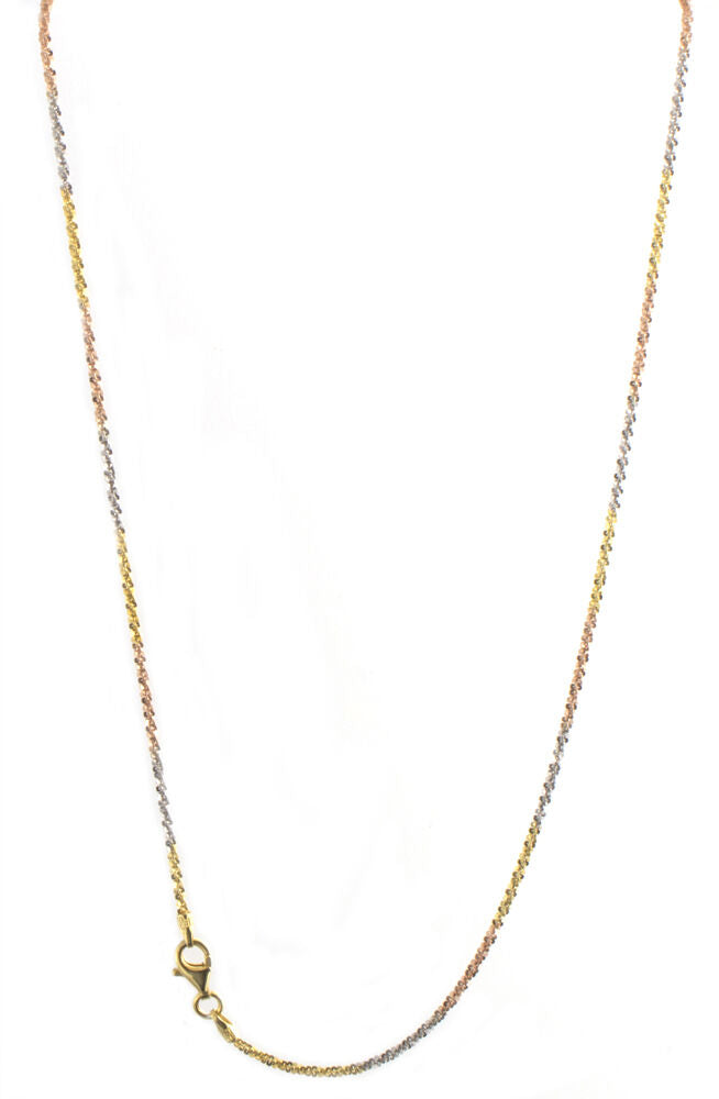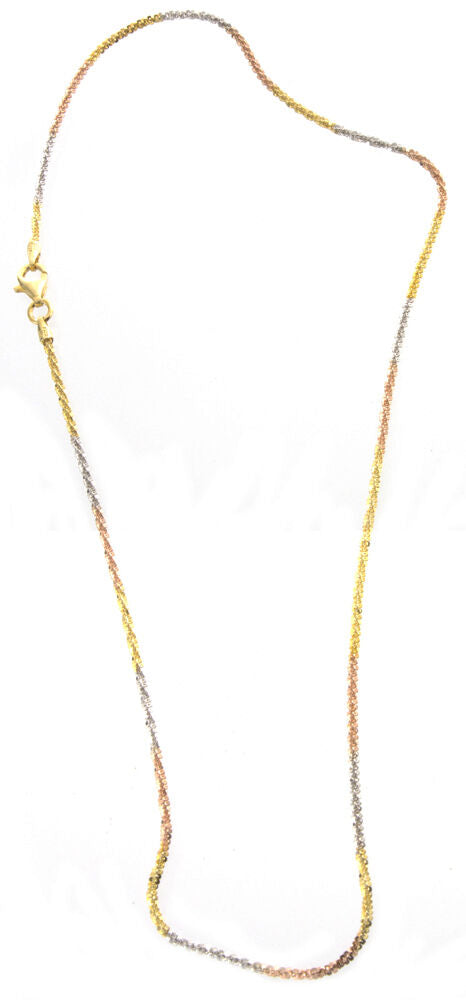 GM 925 Sterling Silver Women's Tri-Colored 16" Chain Necklace 1.5 mm Wide 3gr