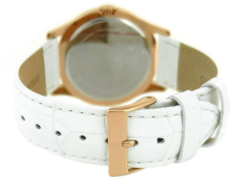 Watch Information: Gender: Women's Case Size: 40mm Dial Color: Mother of Pearl Material Case: Stainless Steel Material Band: Leather Movement: Analog Quartz Water Resist: 30 Meters Water Resistant Features: Crystals...