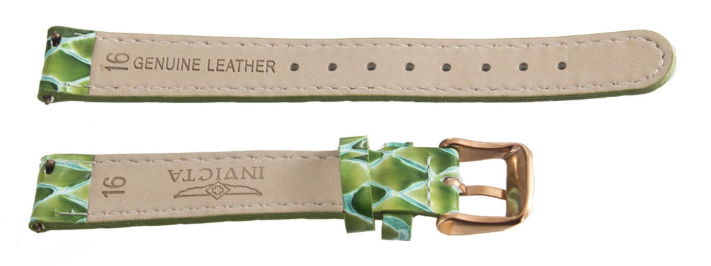 Invicta Womens 16mm x 14mm Green Lizard Leather Watch Rose Gold Buckle Band