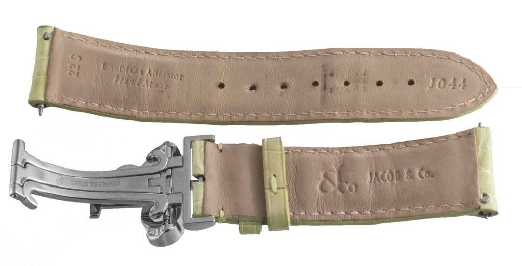 JACOB & CO Men's 22mm x 20mm Green Alligator Leather Silver Buckle Watch Band