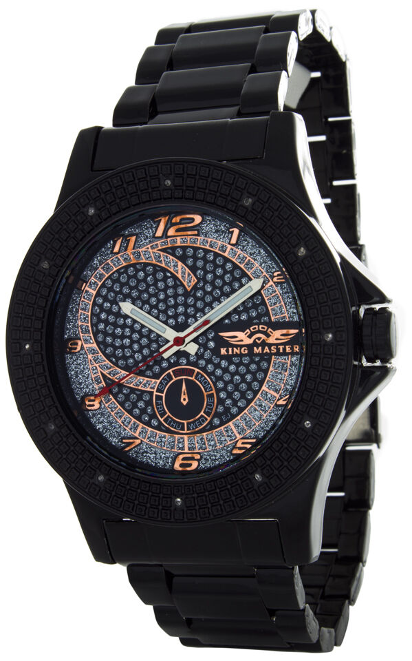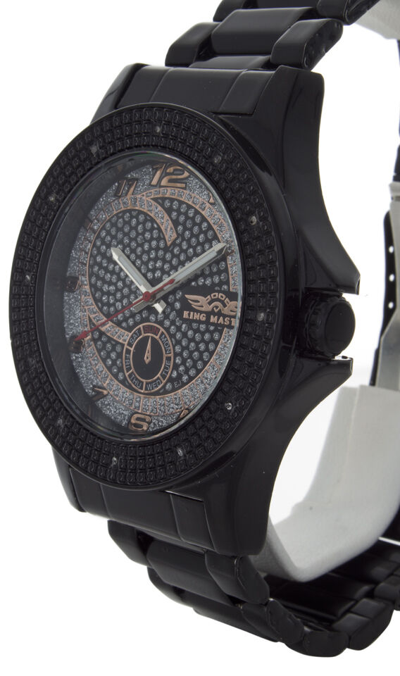 Kings Master Men's Black Ion-plated Steel Black Dial 0.12ct Diamond 105M