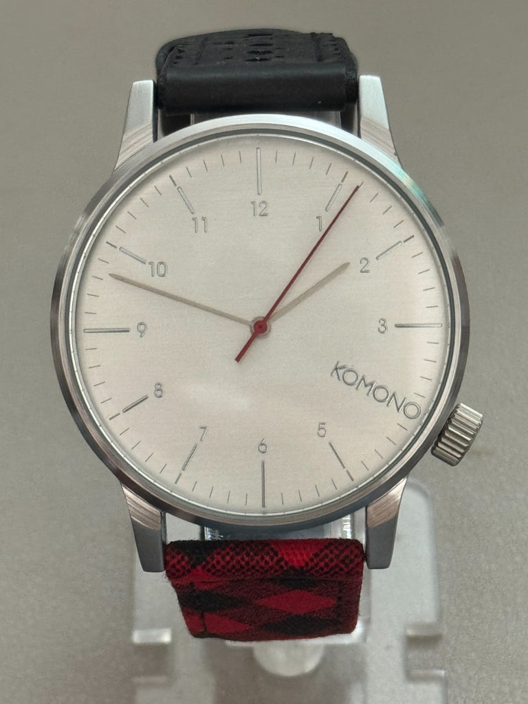 KOMONO Winston Silver Dial Black and Red Leather Strap Men's Watch