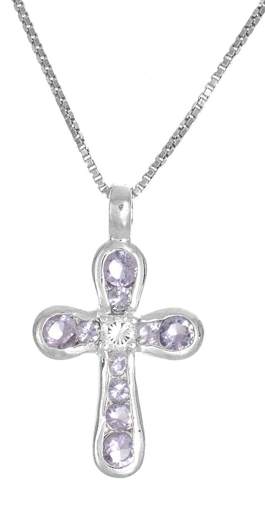 Ladies Sterling Silver 16 Inch Cubic Zirconia 14mm Cross Necklace