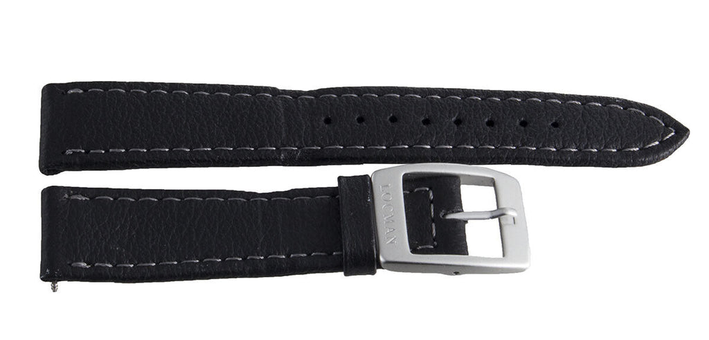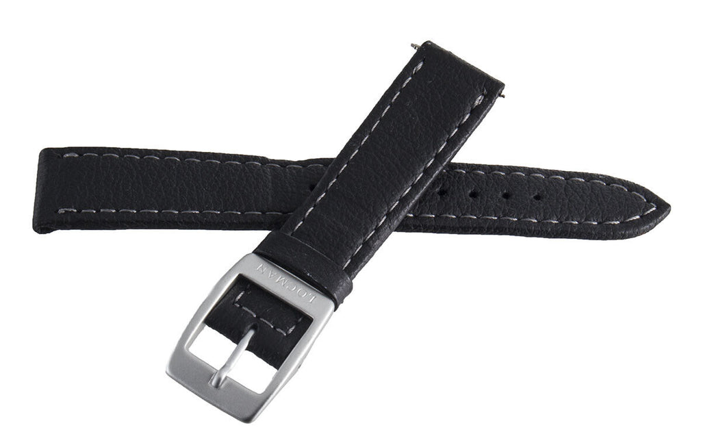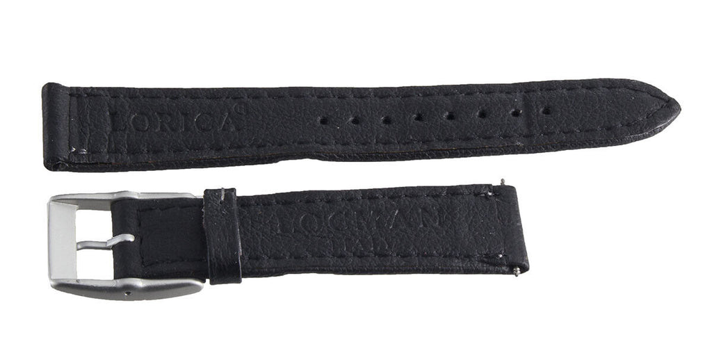 LOCMAN Lorica Men's 18mm Black Leather Silver Buckle Watch Band