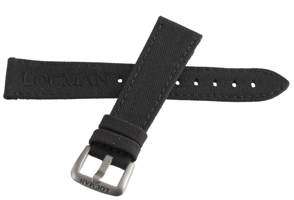 LOCMAN Men's 20MM x 16mm Black Fabric Silver Buckle Band