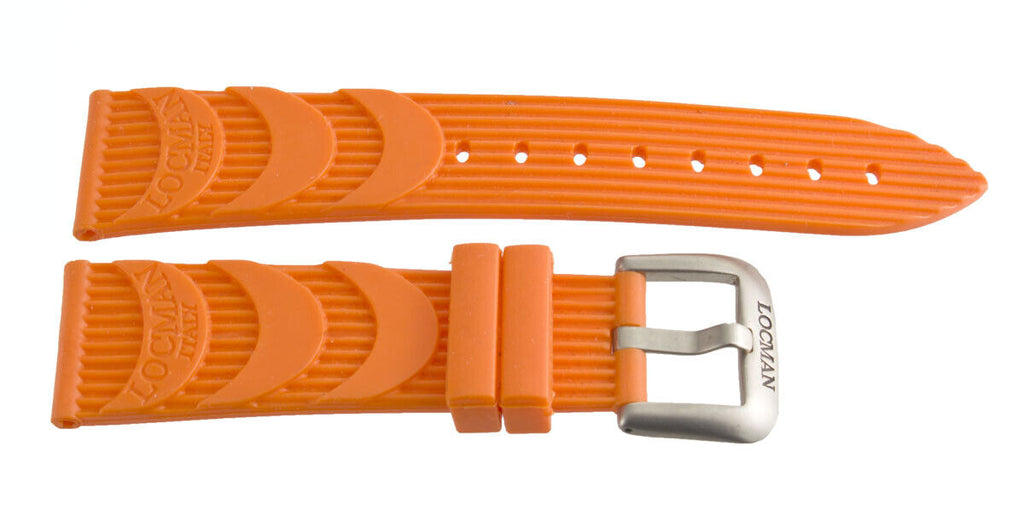 LOCMAN Men's 24MM x 20mm Orange Rubber Silver Buckle Band – Kipliani