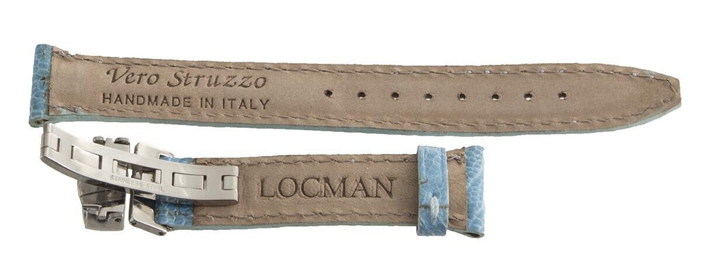 LOCMAN Womens 18MM x 15mm Light Blue Lizard Leather Silver Buckle Watch Band