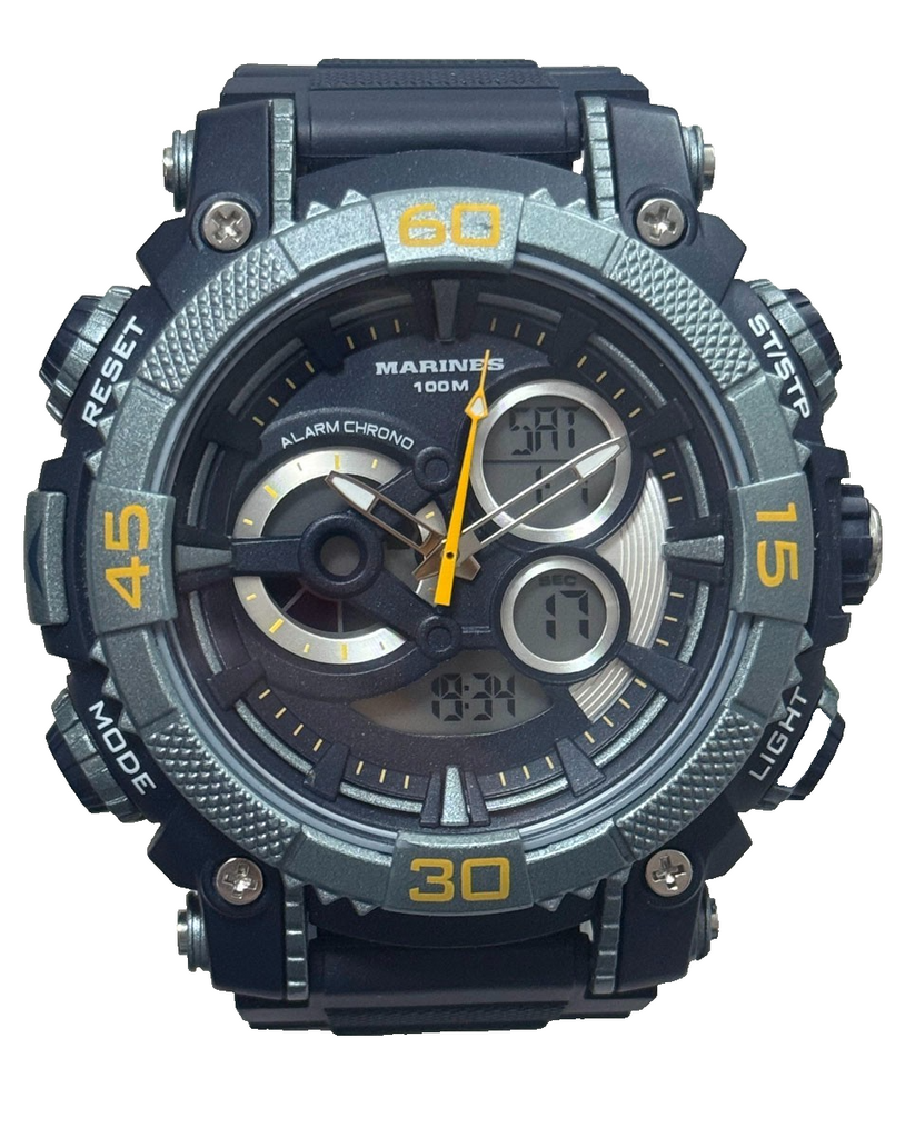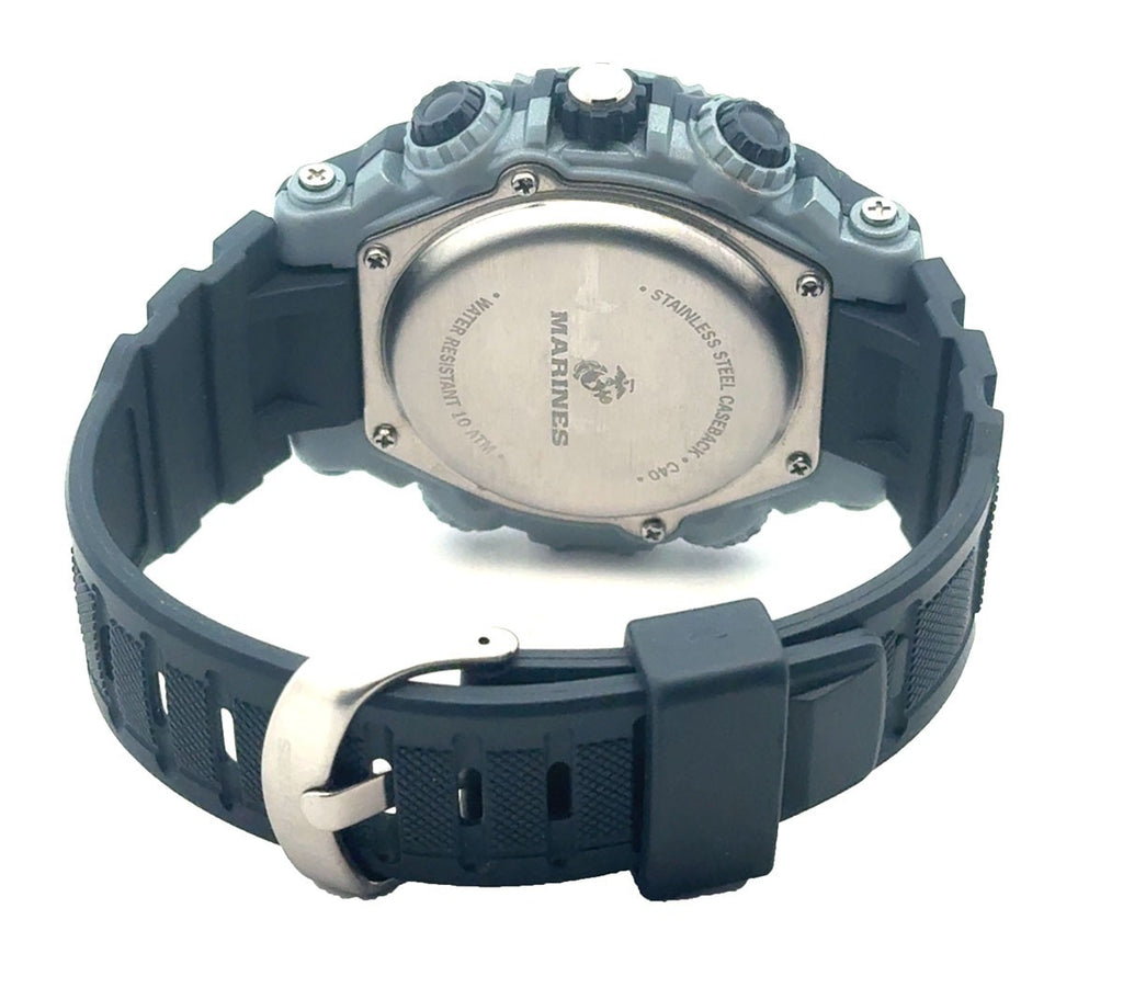 Watch Information: Gender: Men's Case Size: 51mm Dial Color: Blue Material Case: Plastic Material Band: Rubber Diamonds: n/a Movement: Analog Quartz Water Resist: 100 Meters Water Resistant Features: Digital ...