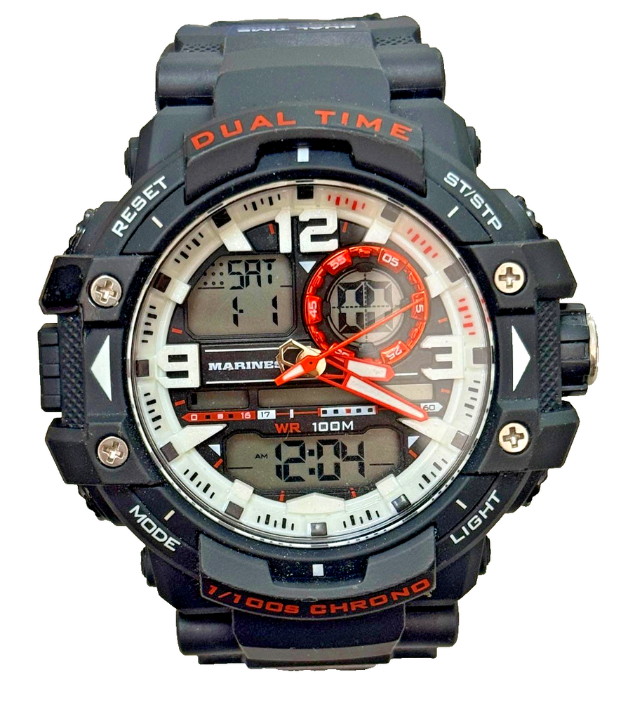 Marines C41 Digital Chronograph Watch White Dial Black Strap