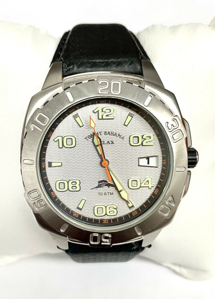 Men's Tommy Bahama Relax SS Watch Black Leather Band Silver Dial RLX1058