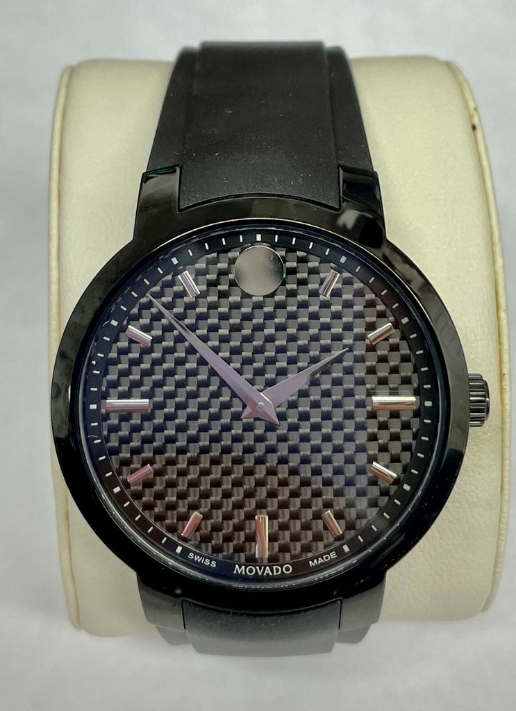 Movado 0606849 Gravity Black Carbon Fiber Dial Black Rubber Strap Men's Watch CONDITION: New W/Tags ...