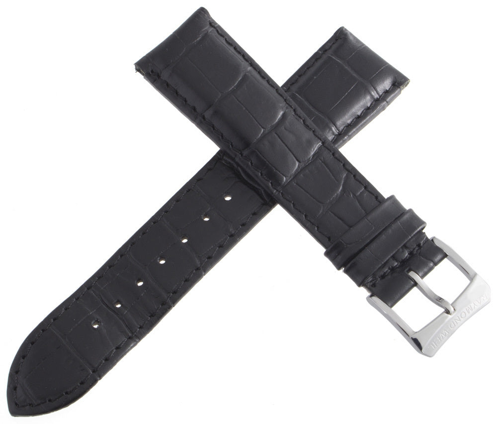 Raymond Weil 21mm Black Leather Watch Band Strap W/ Silver Tone Buckle