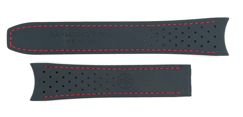 Raymond Weil Freelancer Men's 22mm x 18mm Black Rubber Watch Band Red Stitching