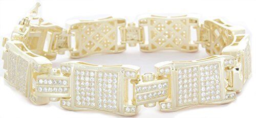 Sterling Silver Men's Gold-Tone Cz Cubic Zirconium Fancy Link Bracelet MGB12