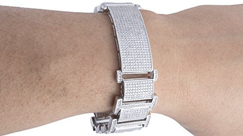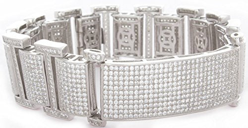Sterling Silver Men's Silver-Tone Cz Cubic Zirconium Fancy Link Bracelet MSB11