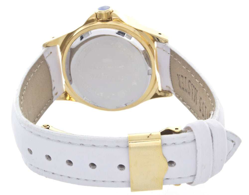 Swiss Master Women's Round Rose Gold-tone Case White Leather Band Watch