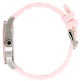 Watch Information: Gender: Women's Case Size: 38mm Dial Color: White Material Case: Stainless Steel Material Band: Silicone Diamonds: n/a Movement: Analog Quartz Water Resist: 30 Meters Water Resistant Features: Analog...